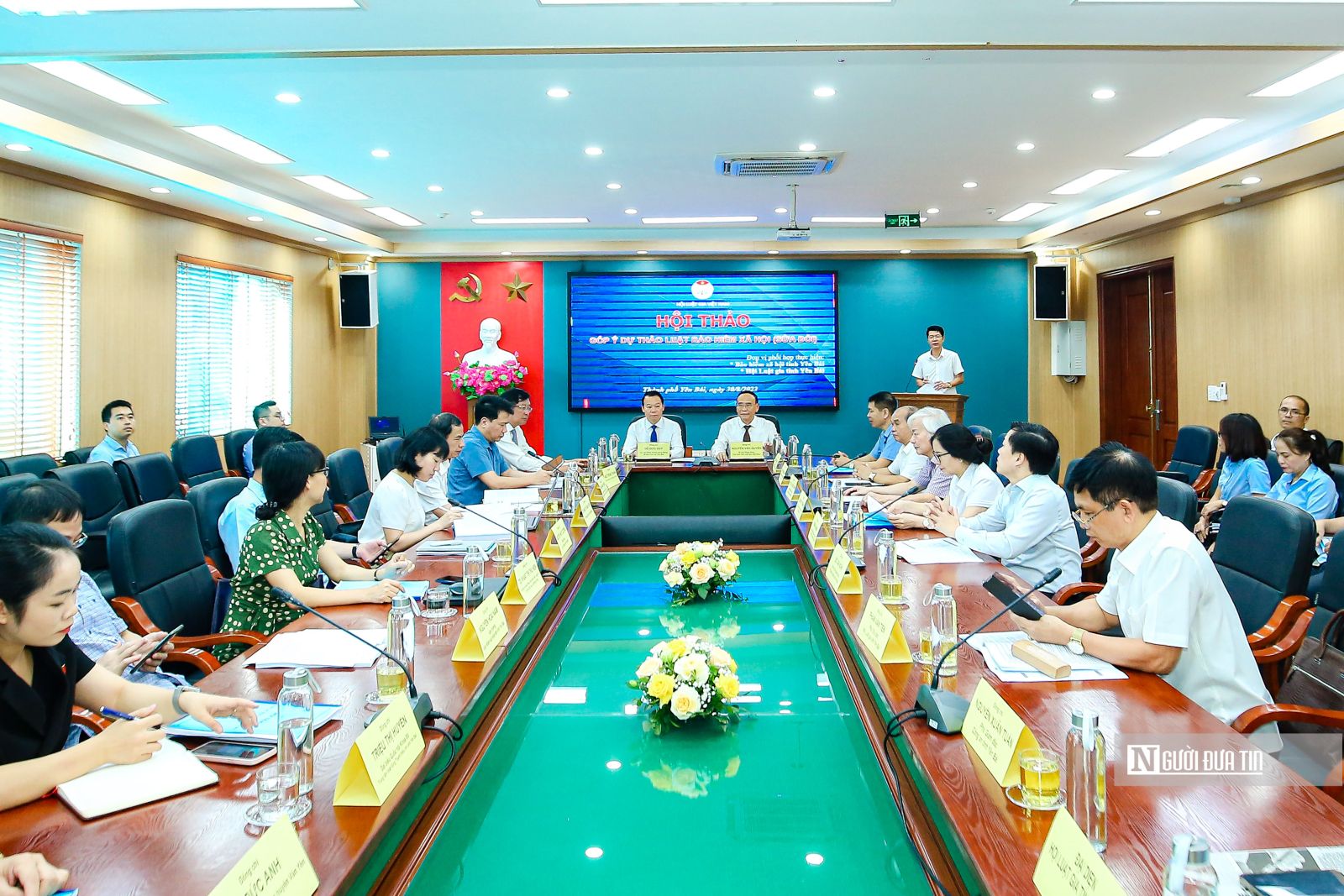 Nhằm góp phần thiết thực, cụ thể, có chiều sâu chất lượng vào dự thảo Luật Bảo hiểm xã hội (sửa đổi), sáng 30/8, tại Tp.Yên Bái, Hội Luật gia Việt Nam phối hợp với Bảo hiểm xã hội tỉnh Yên Bái, Hội Luật gia tỉnh Yên Bái tổ chức Hội thảo góp ý dự thảo Luật Bảo hiểm xã hội (sửa đổi). Ủy viên BCHTW Đảng, Bí thư Tỉnh ủy, Trưởng Đoàn ĐBQH tỉnh Yên Bái Đỗ Đức Duy; Bí thư Đảng đoàn, Chủ tịch Hội Luật gia Việt Nam Nguyễn Văn Quyền; Phó Chủ tịch, Tổng Thư ký hội Luật gia Việt Nam, ĐBQH khoá XV Trần Công Phàn chủ trì hội thảo.