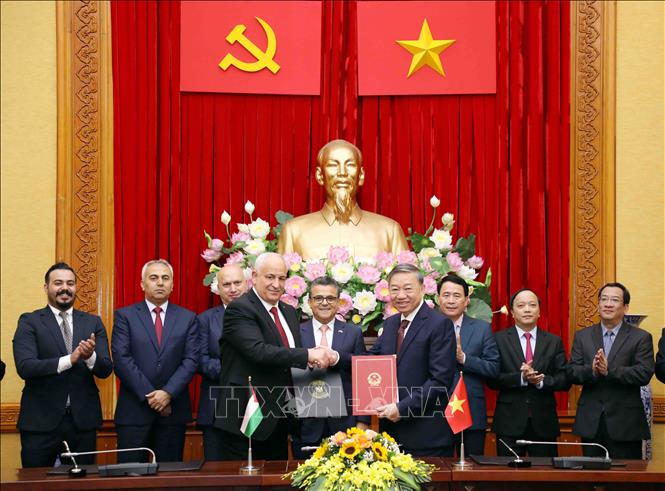 Chào mừng ngài Ziyad Habalreeh và Đoàn đại biểu cấp cao Bộ Nội vụ Nhà nước Palestine sang thăm, làm việc tại Việt Nam, Bộ trưởng Tô Lâm đánh giá cao mối quan hệ hữu nghị tốt đẹp giữa Việt Nam - Palestine nói chung và quan hệ hợp tác giữa Bộ Công an Việt Nam với Bộ Nội vụ Palestine nói riêng; khẳng định chuyến thăm mang ý nghĩa quan trọng trong bối cảnh hai nước kỷ niệm 35 năm thiết lập quan hệ ngoại giao Việt Nam - Palestine (1988 - 2023).