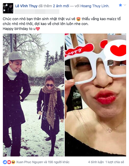 Nếu mà xa thì thật tiếc. Cặp đôi quá hoàn hảo, quá đẹp", dòng bình luận dưới bức ảnh đang nhận được nhiều lượt thích nhất trên Facebook Vĩnh Thụy.
