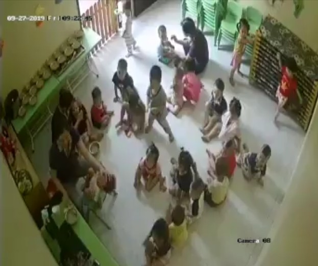 Cứ như vậy, bữa ăn kéo dài gần 13 phút, các cháu bé bị ép ăn liên tục dù không biết đã kịp nuốt hay chưa. Hai nữ giáo viên trong phòng cũng cho các cháu ăn theo cách như vậy.