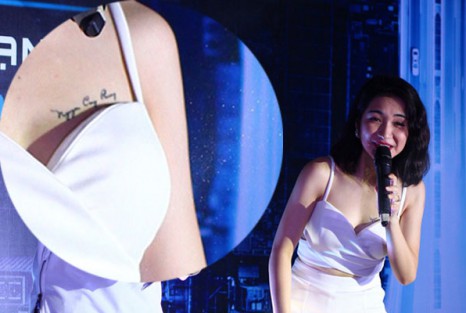 Quan sát kỹ có thể thấy, hình xăm của Trà Ngọc Hằng có chữ H (chữ viết tắt tên Hằng) và T (viết tắt tên bạn trai). Bên cạnh đó còn có hình trái tim lồng vào nhau là minh chứng của tình yêu. Nhiều fan đã phải xuýt xoa trước tình yêu đẹp của Trà Ngọc Hằng.