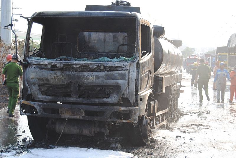 Sau khoảng hơn 1 giờ đồng hồ, đám cháy được dập tắt hoàn toàn. Vụ cháy làm xe bồn bị hư hỏng nặng nhưng không phát nổ, cũng không gây thiệt hại về người.