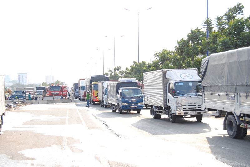 Sự việc trên khiến các phương tiện trên Xa lộ Hà Nội và các hướng ùn tắc kéo dài hàng km, lực lượng chức năng đã huy động dân phòng hỗ trợ phân luồng giao thông cho các phương tiện.
