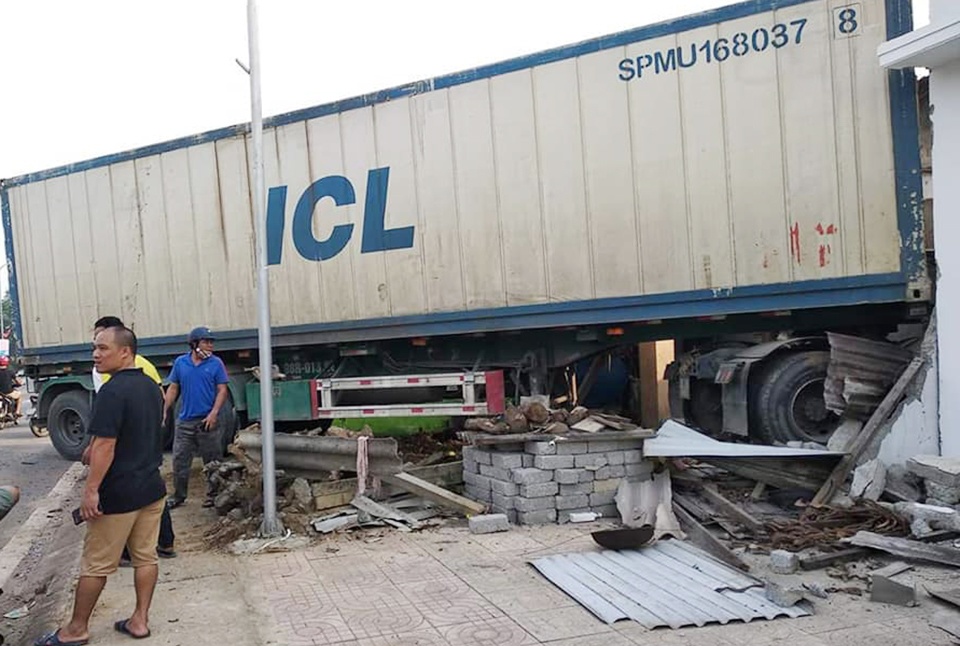 Vụ tai nạn đã khiến tài xế xe container bị thương nặng, sau đó đã được người dân đưa tới bệnh viện cấp cứu.
