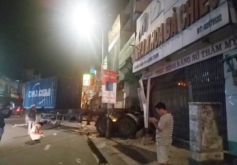 Thời điểm trên, nam tài xế (khoảng 40 tuổi) điều khiển xe đầu kéo container mang biển số tỉnh Tây Ninh trên đường Bạch Đằng hướng đi Phan Đăng Lưu về ngã tư Hàng Xanh, đến trước số 334 thì lao thẳng vào một trụ sở ngân hàng và tông sập tường nhà dân.