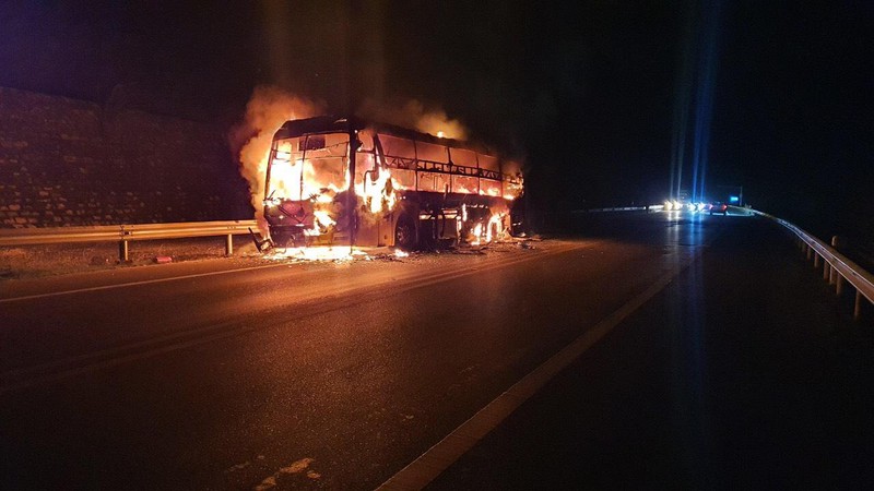 Theo VOV, sau tiếng nổ lớn ở phía đuôi xe, tài xế liền phanh gấp, dừng xe để kiểm tra, thì phát hiện có đốm lửa và khói. May mắn, khi tất cả hành khách chạy ra xa xe thì ngọn lửa lan ra toàn bộ phương tiện. Chỉ ít phút, chiếc xe khách giường nằm đã cháy trơ khung. Nhiều hành khách đã bắt xe khách khác để di chuyển về Hà Nội.