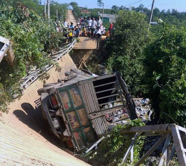 Được biết cầu khu vực 200 được xây dựng từ năm 2001, dài 28 mét, rộng 2,7 mét, giới hạn tải trọng xe dưới 5 tấn. Tuy nhiên xe tải chở đầy hàng đã vượt tải trọng gần gấp 4 lần vẫn bất chấp đi qua nên đã xảy ra sự cố.