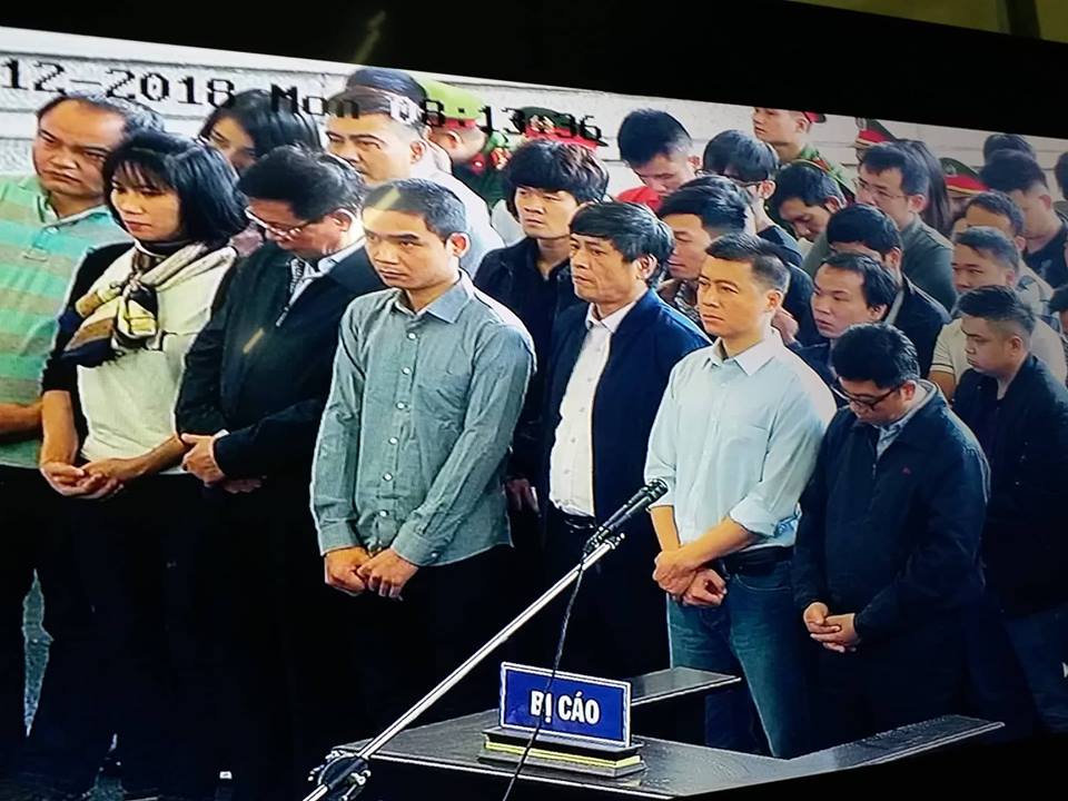 Hình ảnh một số bị cáo tại phiên tòa sơ thẩm.