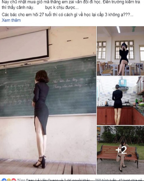 Gần đây, dân mạng đang truyền tay nhau bức ảnh một cô giáo trẻ diện váy xẻ táo bạo đứng trên lớp giảng bài. Kèm theo hình ảnh là dòng trạng thái: "Cô giáo quyến rũ nhất hệ mặt trời".