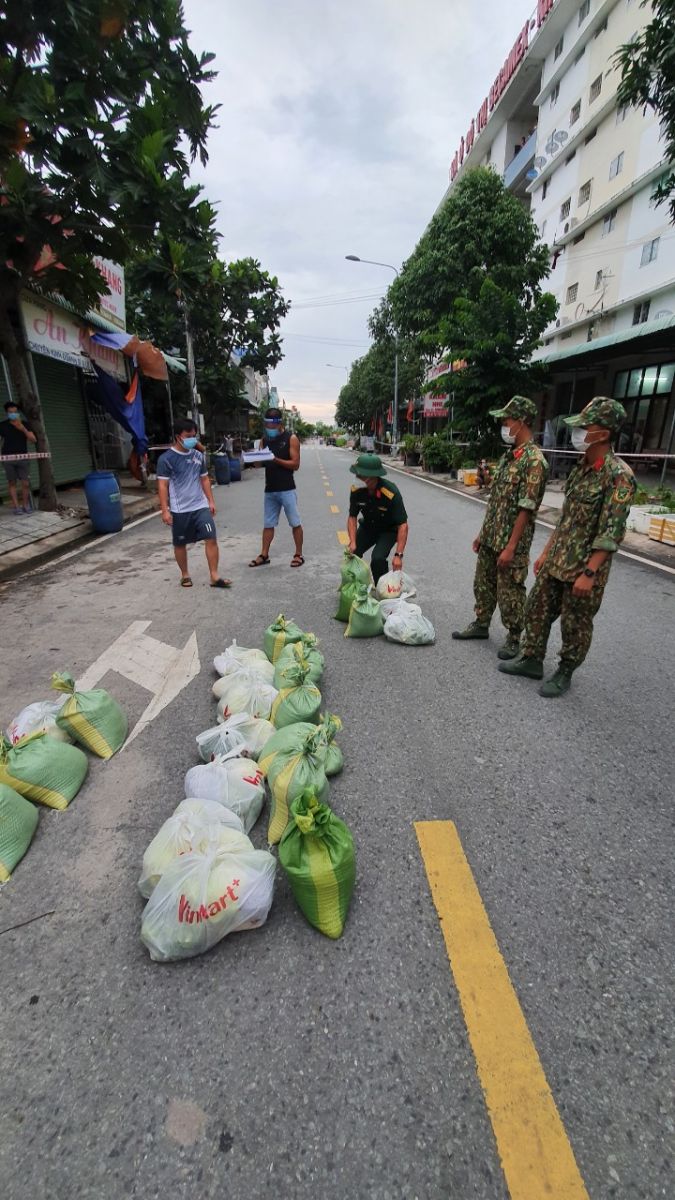 Hàng trăm chiến sĩ bộ đội cùng người dân ở Bình Dương đã xuyên đêm phân phối lương thực và vận chuyển cho người dân ở trong khu cách ly khiến nhiều người xúc động.