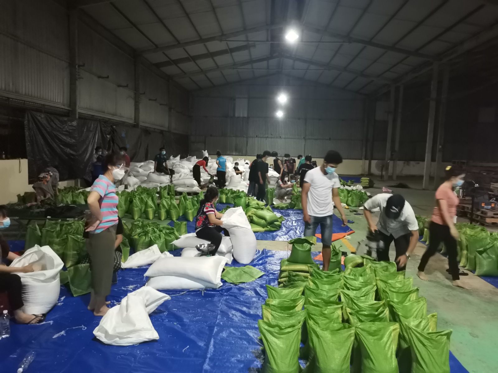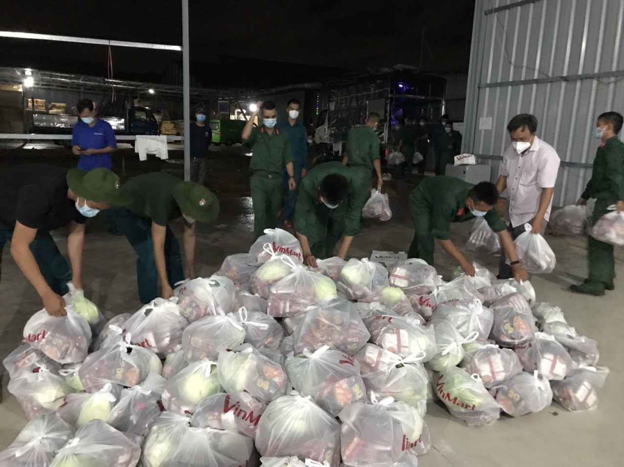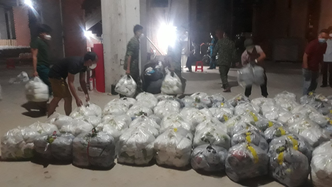 Tối ngày 24 rạng sáng 25/8, hàng trăm cán bộ chiến sĩ bộ đội, người dân, tình nguyện viên tại Tp.Thuận An, thị xã Tân Uyên (hai vùng có F0 đậm đặc và đang bị phong toả chặt) đang nhanh chóng chia các phần lương thực, nhu yếu phẩm đến với hàng trăm nghìn người dân ở trong khu vực phong toả.