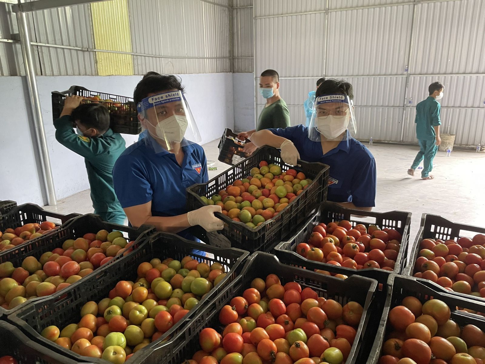 Cà chua tươi mới được vận chuyển về kho rồi phân loại sạch sẽ, cẩn thận trước khi giao đến tay người dân.