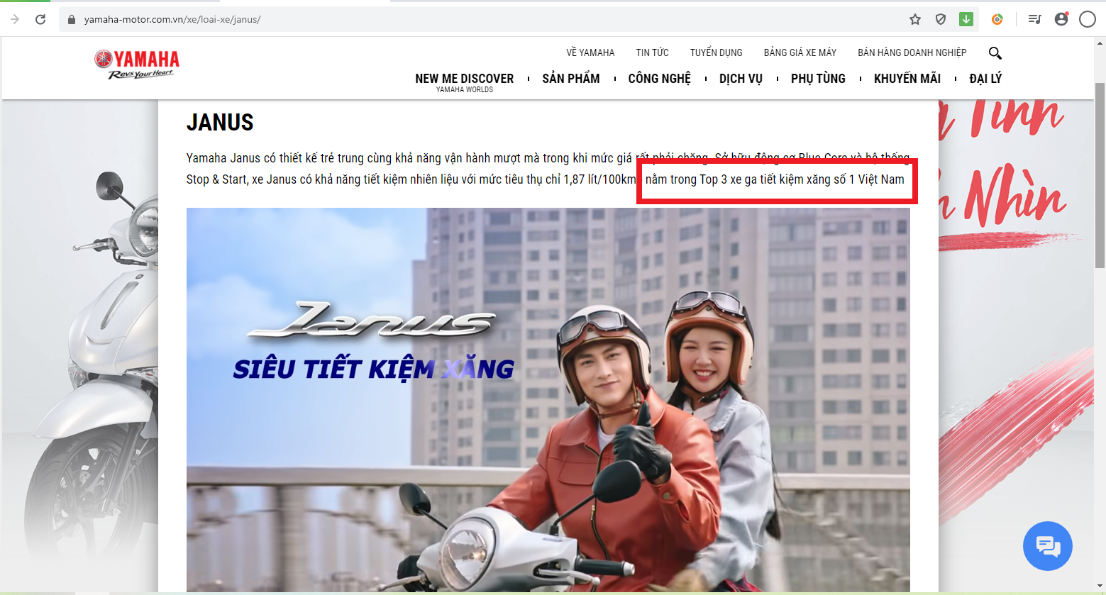 Thời gian vừa qua, một số dòng xe máy của công ty TNHH Yamaha Motor Việt Nam được quảng cáo rầm rộ là mẫu xe tiết kiệm xăng số 1 Việt Nam. Khi truy cập vào địa chỉ website có tên miền http://yamaha-motor.com.vn, tại đây một số dòng xe máy mang thương hiệu Yamaha như: Yamaha Janus, Yamaha Latte, Yamaha Jupiter, Yamaha Sirius F1,… được quảng cáo với các thông điệp: “Mẫu xe tiết kiệm xăng số 1 Việt Nam”, “top 3 xe ga tiết kiệm xăng số 1 Việt Nam”,...